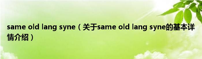 本文关于same old lang syne的基本详情介绍就讲解完毕,希望对大家有所帮助。