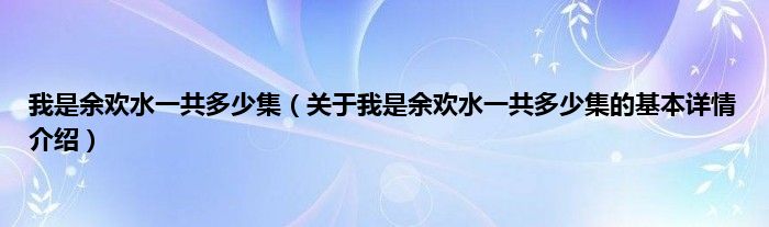 本文关于我是余欢水一共多少集的基本详情介绍就讲解完毕,希望对大家有所帮助。