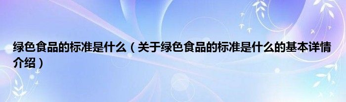 本文关于绿色食品的标准是什么的基本详情介绍就讲解完毕,希望对大家有所帮助。