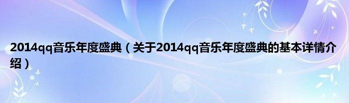 本文关于2014qq音乐年度盛典的基本详情介绍就讲解完毕,希望对大家有所帮助。