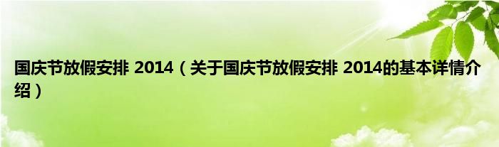 本文关于国庆节放假安排 2014的基本详情介绍就讲解完毕,希望对大家有所帮助。