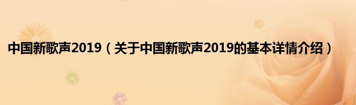本文关于中国新歌声2019的基本详情介绍就讲解完毕,希望对大家有所帮助。