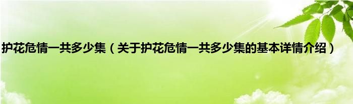 本文关于护花危情一共多少集的基本详情介绍就讲解完毕,希望对大家有所帮助。