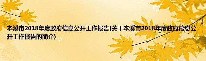 大家好,本溪市2018年度政府信息公开工作报告,关于本溪市2018年度政府信息公开工作报告的简介很多人还不知道,现在让我们一起来看看吧!