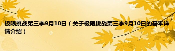 本文关于极限挑战第三季9月10日的基本详情介绍就讲解完毕,希望对大家有所帮助。