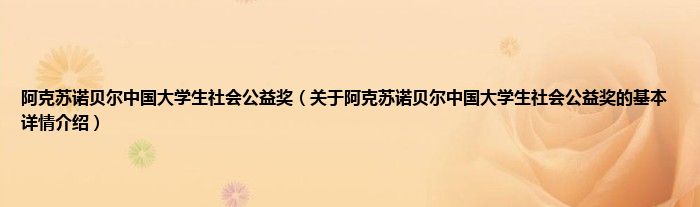 本文关于阿克苏诺贝尔中国大学生社会公益奖的基本详情介绍就讲解完毕,希望对大家有所帮助。