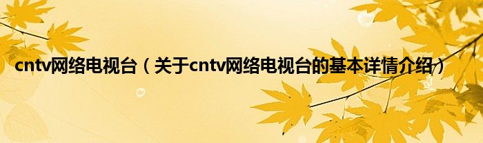本文关于cntv网络电视台的基本详情介绍就讲解完毕,希望对大家有所帮助。