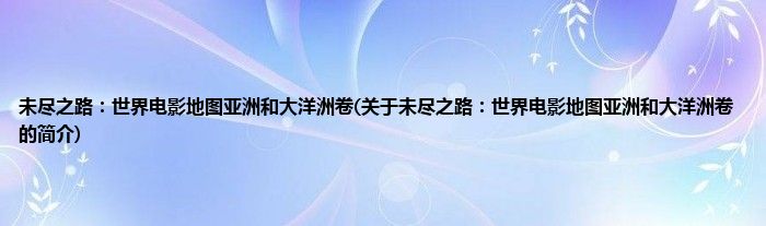 本文关于未尽之路:世界电影地图亚洲和大洋洲卷的简介就讲解完毕,希望对大家有所帮助。
