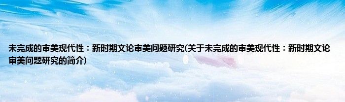 本文关于未完成的审美现代性:新时期文论审美问题研究的简介就讲解完毕,希望对大家有所帮助。