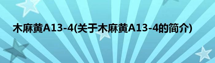 本文关于木麻黄A13-4的简介就讲解完毕,希望对大家有所帮助。
