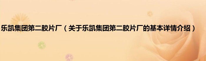 本文关于乐凯集团第二胶片厂的基本详情介绍就讲解完毕,希望对大家有所帮助。