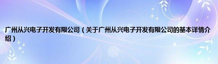 本文关于广州从兴电子开发有限公司的基本详情介绍就讲解完毕,希望对大家有所帮助。