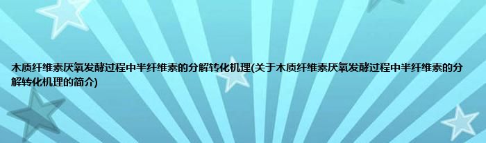 本文关于木质纤维素厌氧发酵过程中半纤维素的分解转化机理的简介就讲解完毕,希望对大家有所帮助。