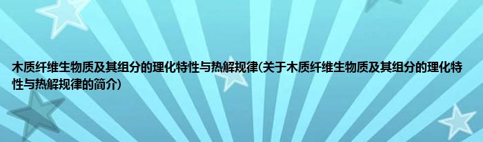 本文关于木质纤维生物质及其组分的理化特性与热解规律的简介就讲解完毕,希望对大家有所帮助。