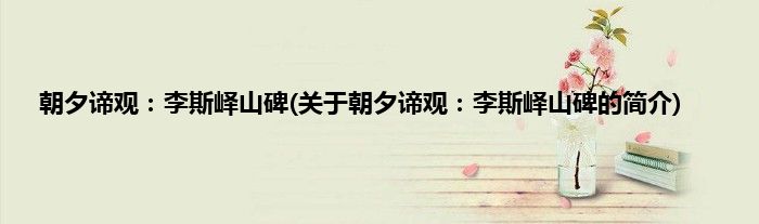 本文关于朝夕谛观:李斯峄山碑的简介就讲解完毕,希望对大家有所帮助。