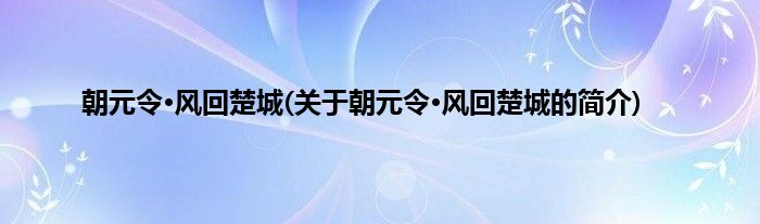大家好,朝元令·风回楚城,关于朝元令·风回楚城的简介很多人还不知道,现在让我们一起来看看吧!