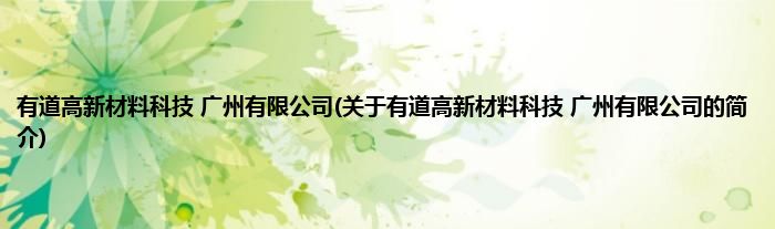 大家好,有道高新材料科技 广州有限公司,关于有道高新材料科技 广州有限公司的简介很多人还不知道,现在让我们一起来看看吧!
