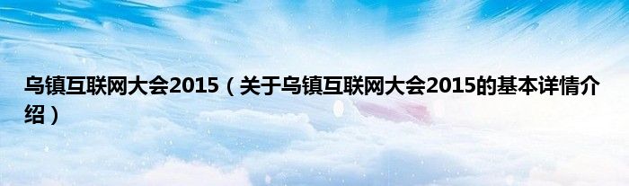 本文关于乌镇互联网大会2015的基本详情介绍就讲解完毕,希望对大家有所帮助。