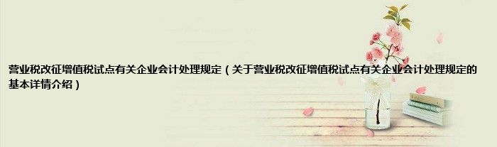 本文关于营业税改征增值税试点有关企业会计处理规定的基本详情介绍就讲解完毕,希望对大家有所帮助。