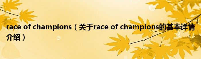 本文关于race of champions的基本详情介绍就讲解完毕,希望对大家有所帮助。