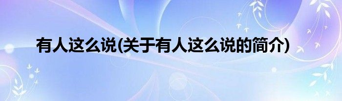 大家好,有人这么说,关于有人这么说的简介很多人还不知道,现在让我们一起来看看吧!