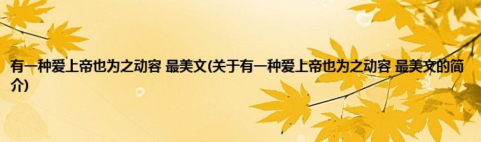 本文关于有一种爱上帝也为之动容 最美文的简介就讲解完毕,希望对大家有所帮助。