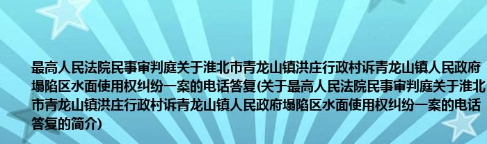 本文关于最高人民法院民事审判庭关于淮北市青龙山镇洪庄行政村诉青龙山镇人民政府塌陷区水面使用权纠纷一案的电话答复的简介就讲解完毕,希望对大家有所帮助。