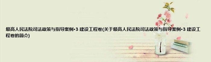 本文关于最高人民法院司法政策与指导案例·3 建设工程卷的简介就讲解完毕,希望对大家有所帮助。