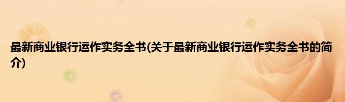 本文关于最新商业银行运作实务全书的简介就讲解完毕,希望对大家有所帮助。