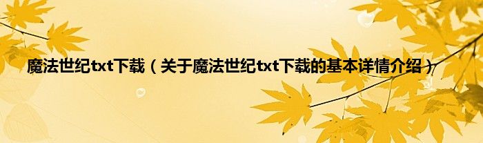 本文关于魔法世纪txt下载的基本详情介绍就讲解完毕,希望对大家有所帮助。
