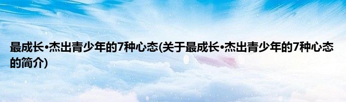 大家好,最成长·杰出青少年的7种心态,关于最成长·杰出青少年的7种心态的简介很多人还不知道,现在让我们一起来看看吧!