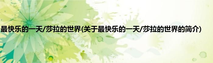 本文关于最快乐的一天/莎拉的世界的简介就讲解完毕,希望对大家有所帮助。