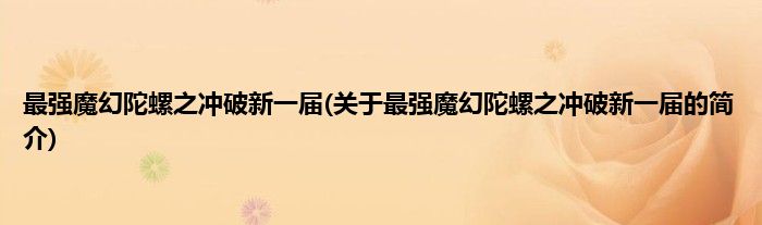 本文关于最强魔幻陀螺之冲破新一届的简介就讲解完毕,希望对大家有所帮助。