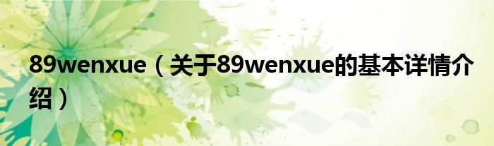 本文关于89wenxue的基本详情介绍就讲解完毕,希望对大家有所帮助。