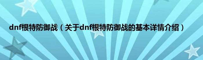 本文关于dnf根特防御战的基本详情介绍就讲解完毕,希望对大家有所帮助。