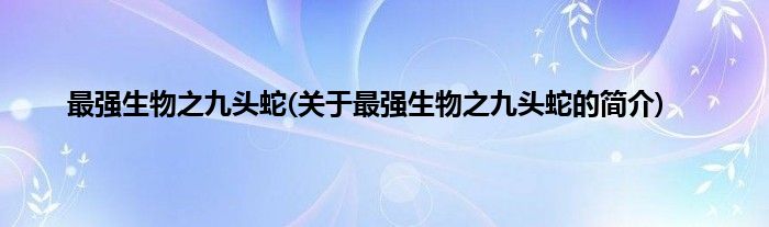 本文关于最强生物之九头蛇的简介就讲解完毕,希望对大家有所帮助。