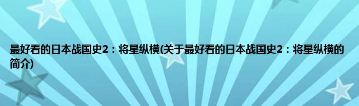 大家好,最好看的日本战国史2:将星纵横,关于最好看的日本战国史2:将星纵横的简介很多人还不知道,现在让我们一起来看看吧!