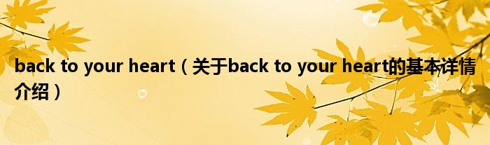本文关于back to your heart的基本详情介绍就讲解完毕,希望对大家有所帮助。