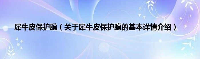 大家好我是小蝌蚪,犀牛皮保护膜,关于犀牛皮保护膜的基本详情介绍很多人还不知道,那么现在让我们一起来看看吧!