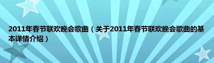 本文关于2011年春节联欢晚会歌曲的基本详情介绍就讲解完毕,希望对大家有所帮助。