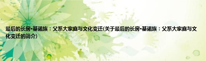 本文关于最后的长房·基诺族:父系大家庭与文化变迁的简介就讲解完毕,希望对大家有所帮助。
