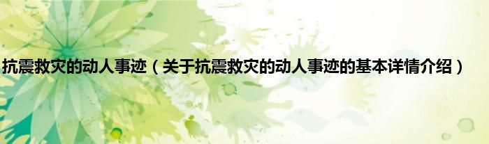 本文关于抗震救灾的动人事迹的基本详情介绍就讲解完毕,希望对大家有所帮助。