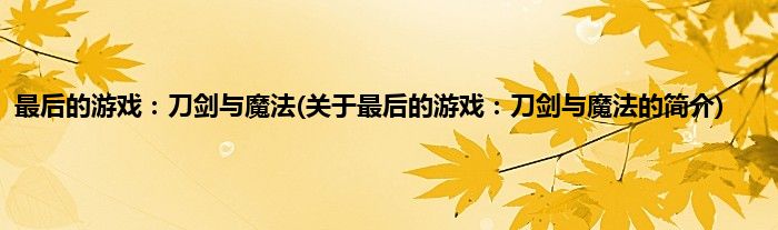 本文关于最后的游戏:刀剑与魔法的简介就讲解完毕,希望对大家有所帮助。
