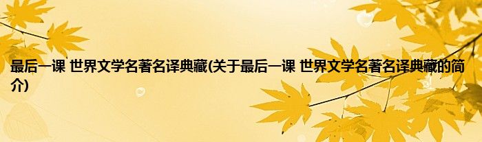 本文关于最后一课 世界文学名著名译典藏的简介就讲解完毕,希望对大家有所帮助。