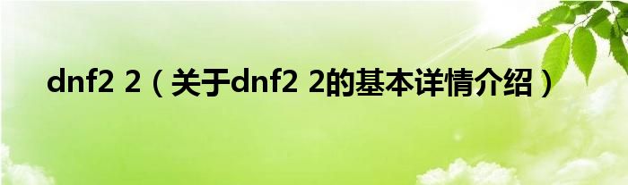 本文关于dnf2 2的基本详情介绍就讲解完毕,希望对大家有所帮助。