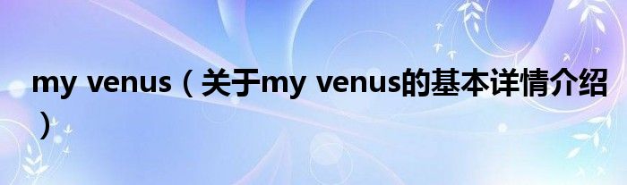 本文关于my venus的基本详情介绍就讲解完毕,希望对大家有所帮助。