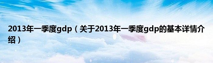 本文关于2013年一季度gdp的基本详情介绍就讲解完毕,希望对大家有所帮助。