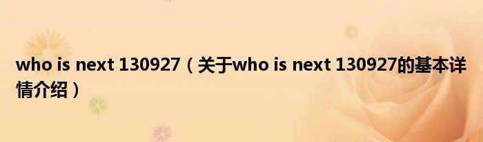 本文关于who is next 130927的基本详情介绍就讲解完毕,希望对大家有所帮助。