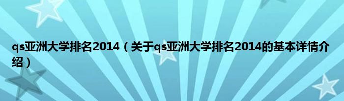 本文关于qs亚洲大学排名2014的基本详情介绍就讲解完毕,希望对大家有所帮助。