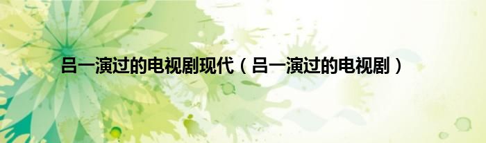 大家好,小问来为大家解答以上问题。吕一演过的电视剧现代,吕一演过的电视剧这个很多人还不知道,现在让我们一起来看看吧!